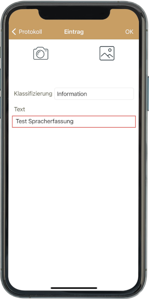 Danach den Text sprechen, den man im Eintrag erfasst haben möchte.
