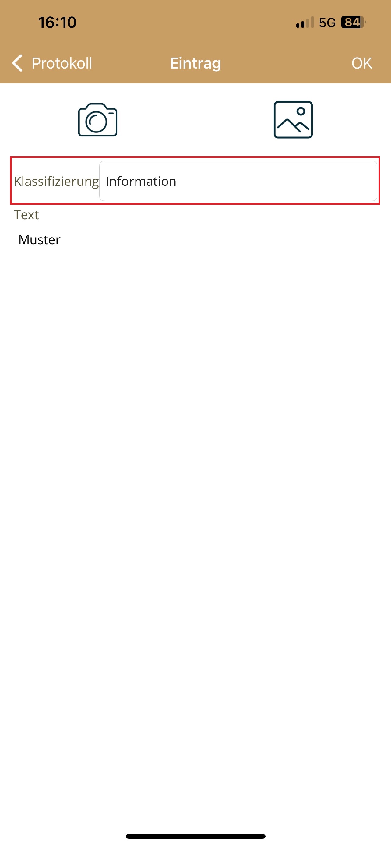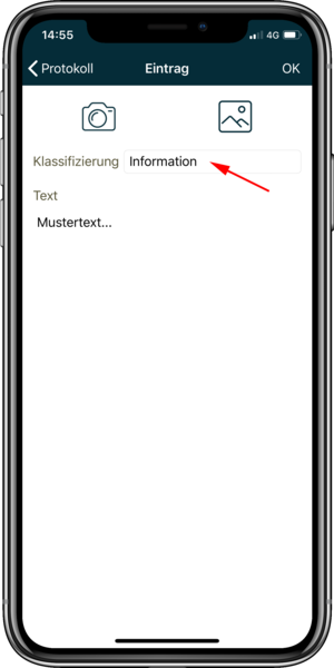 Bei der Klassifizierung auf ,,Pendenzen’’ klicken. Danach den gewünschten Text eingeben und wer dafür verantwortlich ist ausfüllen. Bei ,,wann’’ kann man das Datum auswählen, bis wann es erledigt sein muss.