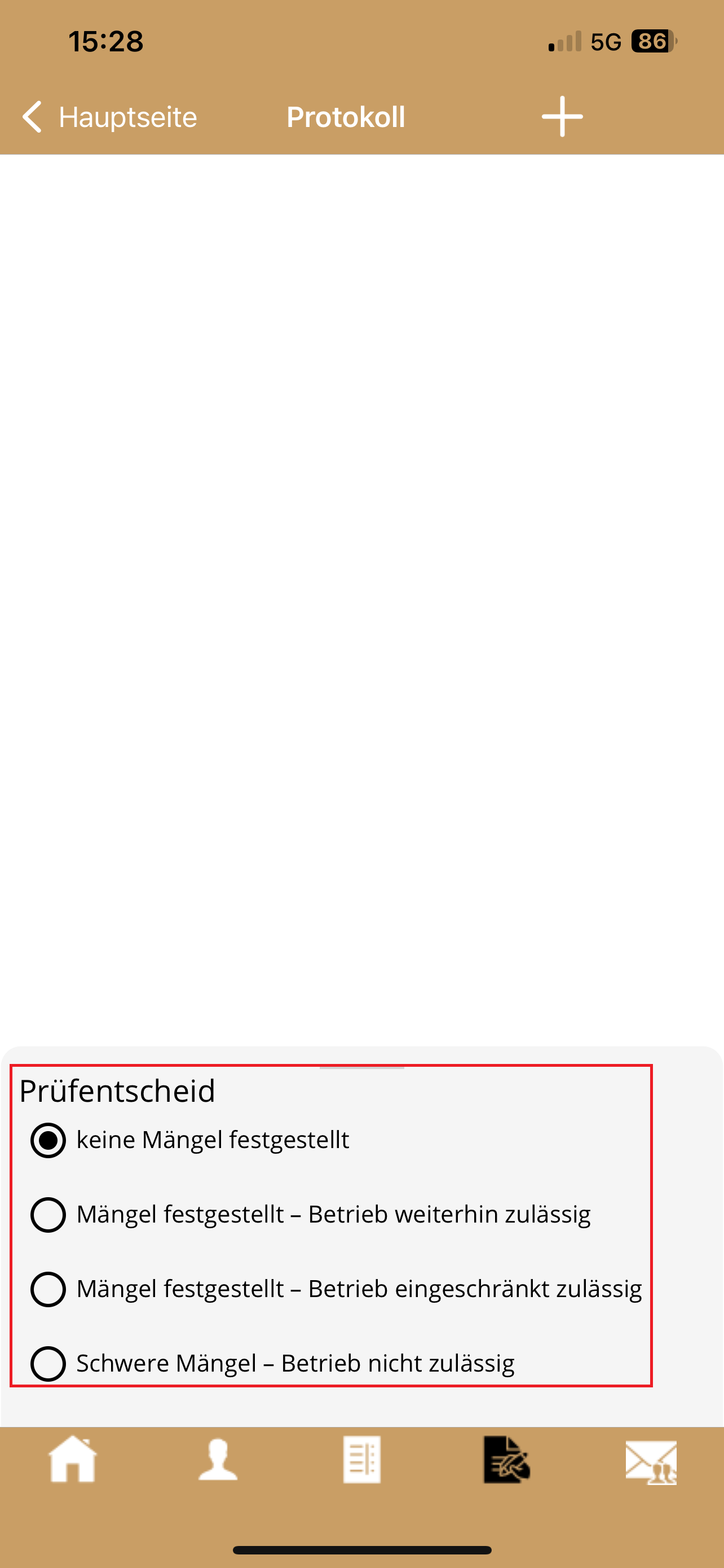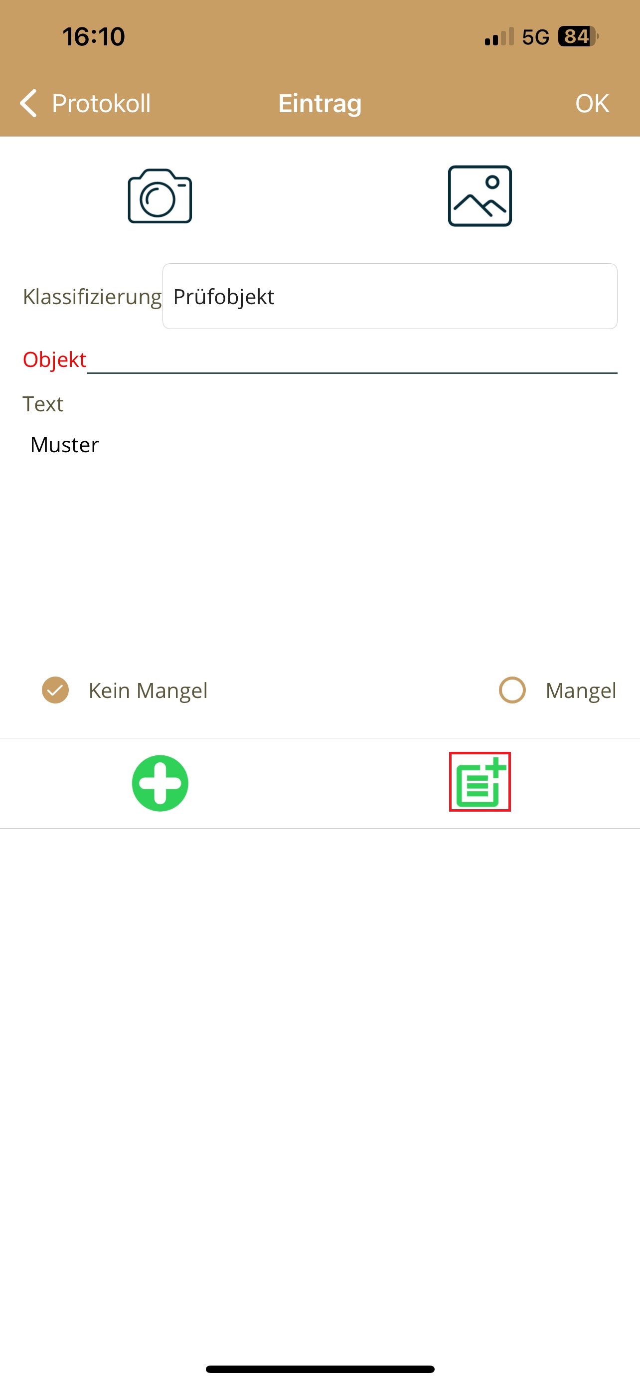 → Tipp: Ergänzen Sie Ihre Einträge mit den vorgefertigten Mängeltexten (siehe Frage 4).