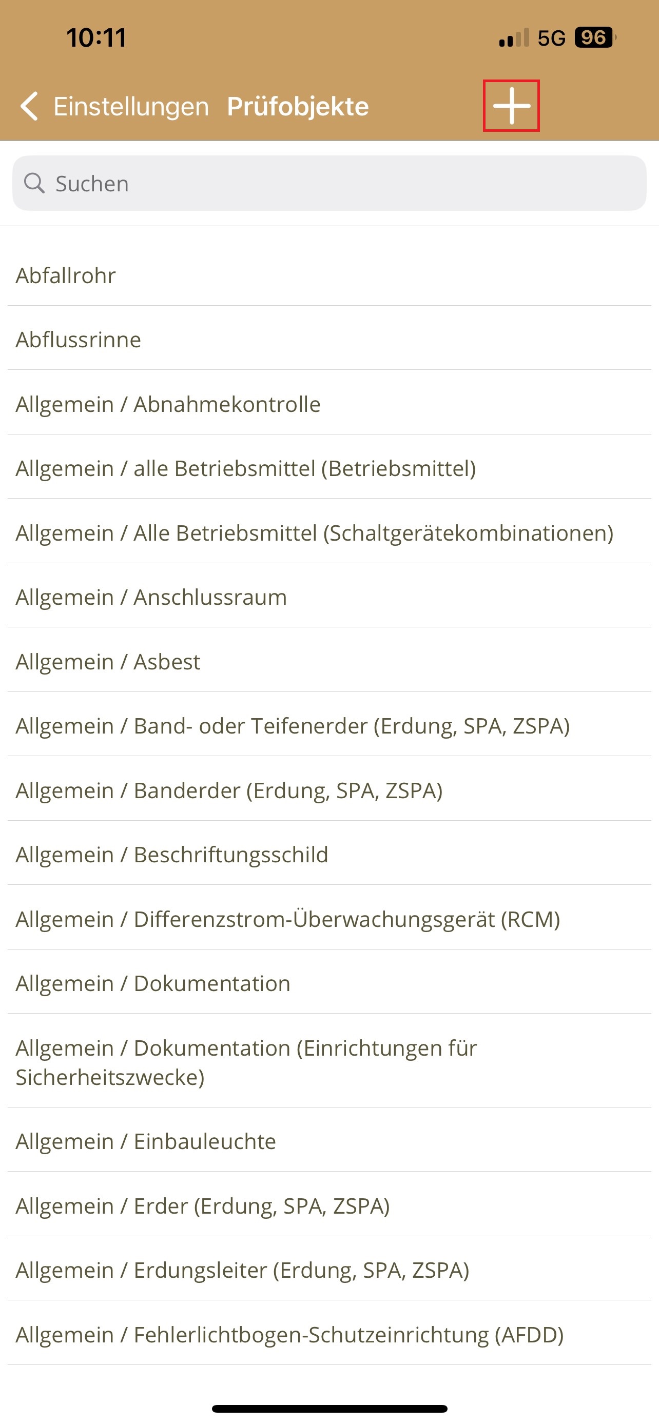 Öffnen Sie hierzu erneut die Übersicht der Prüfobjekte und klicken Sie auf das Plus-Symbol, um ein neues Objekt anzulegen.