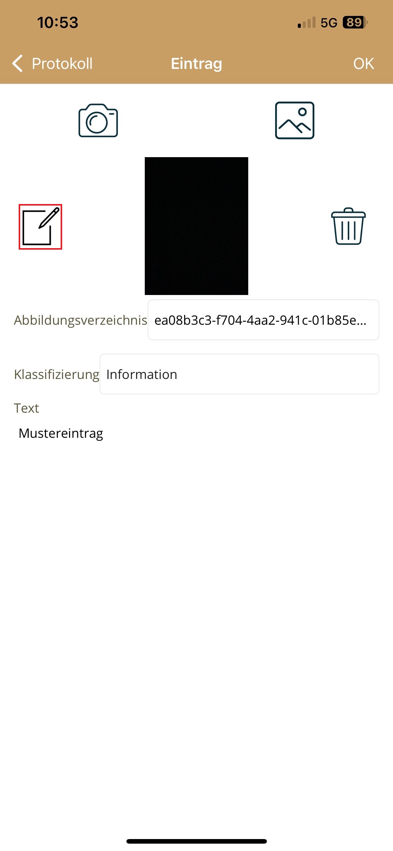 Mit ,,OK’’ wird die Seite verlassen und man kehrt wieder auf das Protokoll zurück.