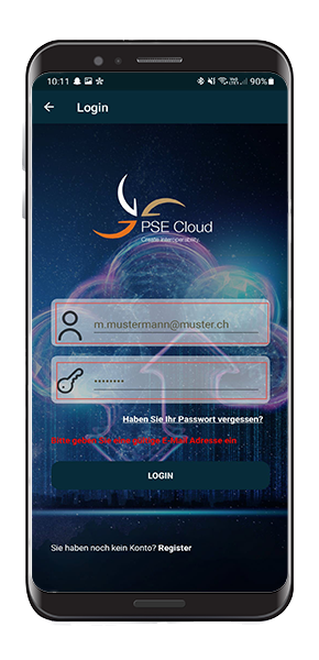Anschliessend geben Sie Ihre Login-Daten der PSE Cloud ein: