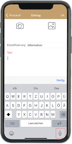 Danach den Text sprechen, den man im Eintrag erfasst haben möchte.