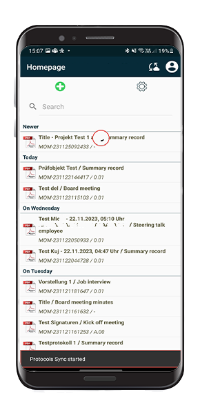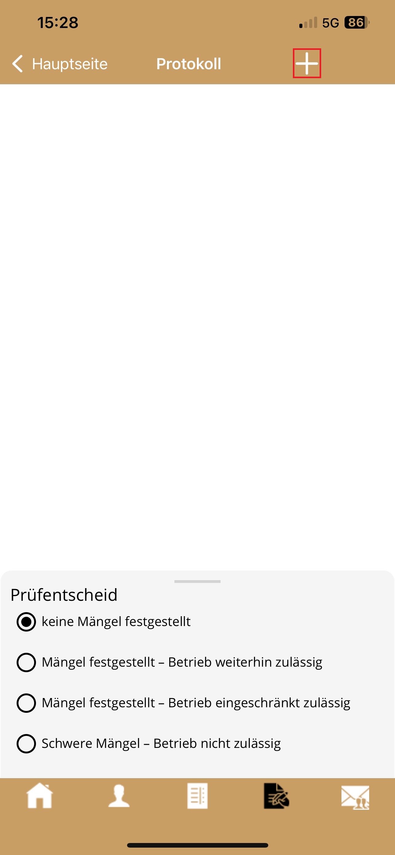Klicken Sie auf der Startseite auf das grüne Plussymbol, um ein neues Protokoll zu erstellen.