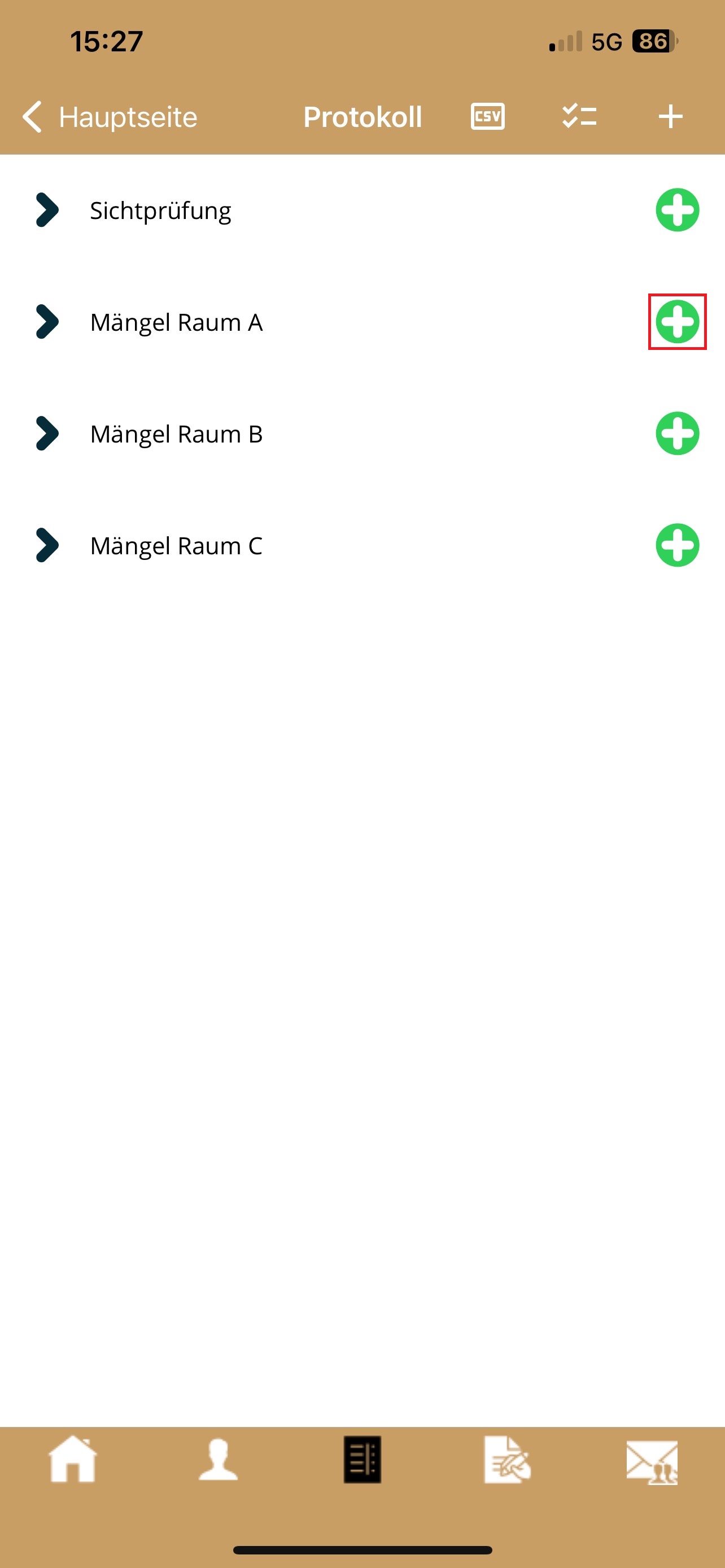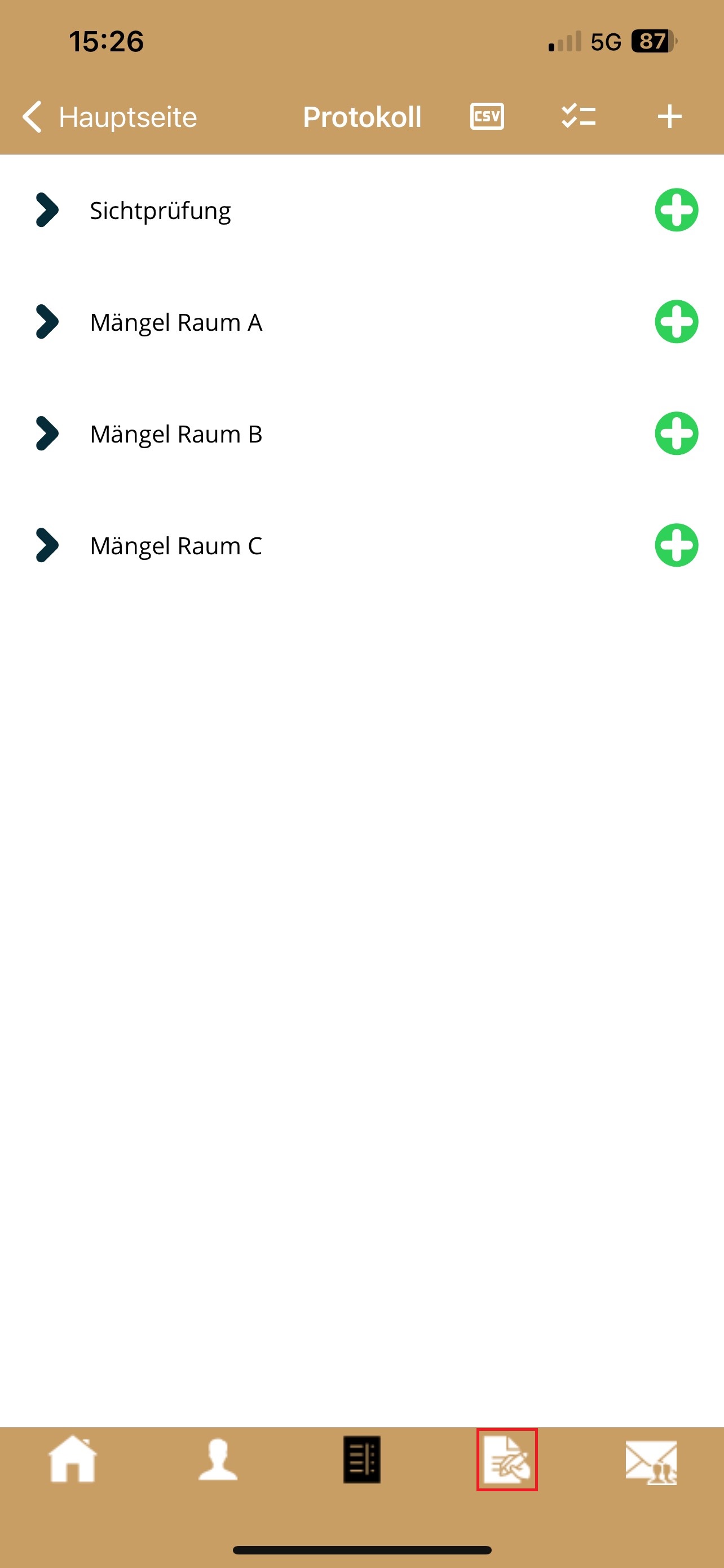 Auf der Hauptseite das grüne Plus anklicken und eine Vorlage auswählen oder bereits erstellte Protokolle wiederverwenden.