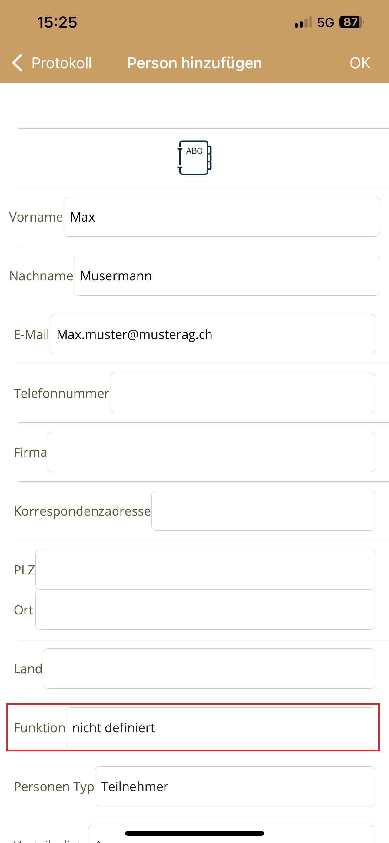 Den Teilnehmer mit ,,OK’’ oben rechts abspeichern.