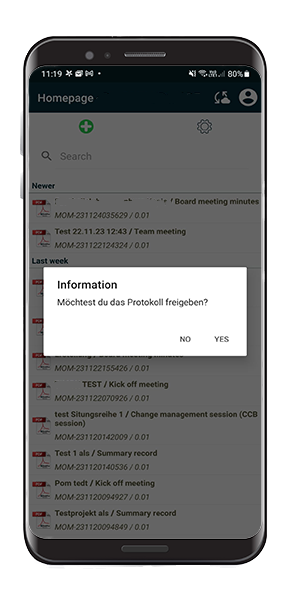 Sobald Sie ein neues Protokoll erstellen oder eine Änderung speichern werden Sie gefragt, ob Sie das Protokoll freigeben möchten: